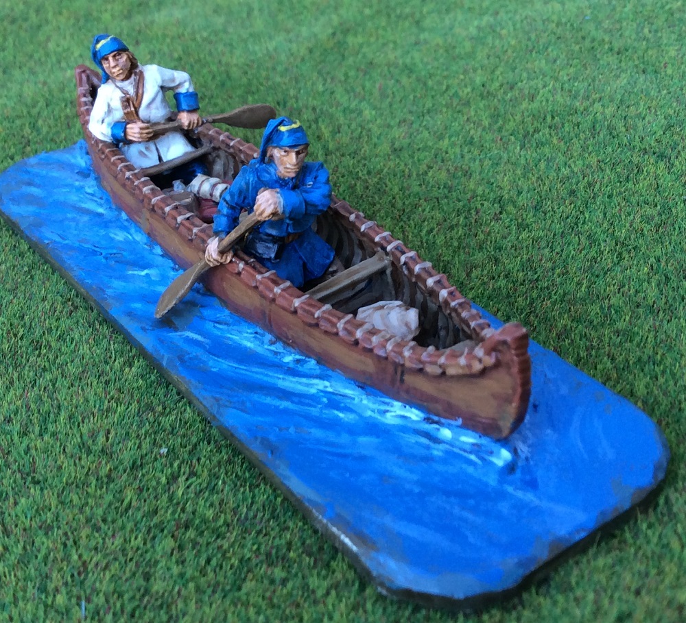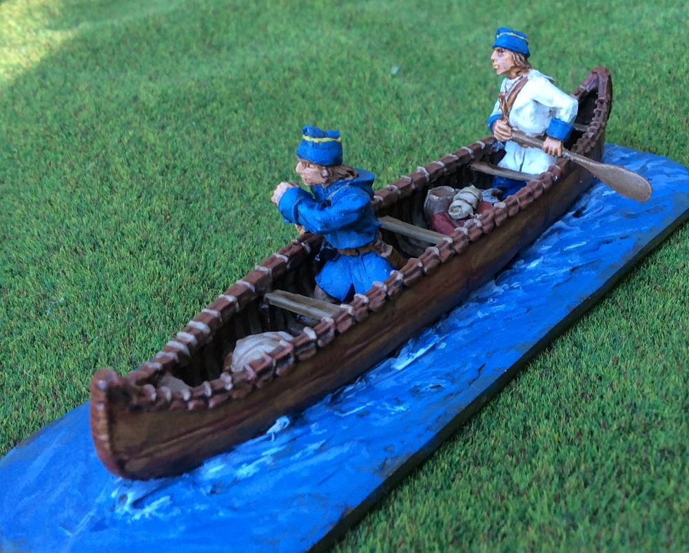 What's a French and Indian Wars battle without canoes? Fortunately, Conquest Miniatures make some lovely canoes with different crews, so here's one from the Compagnie Franche de la Marines.